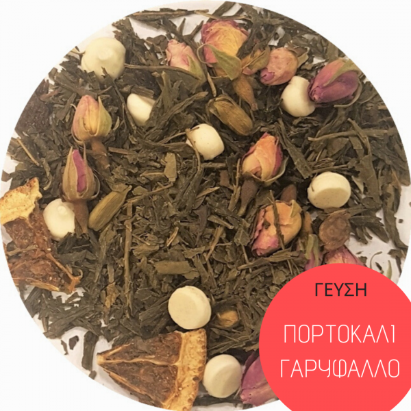 Συστατικά: Πράσινο Τσάι, Καπελάκι Μαρέγκας, Σουλτανίνα, Τριαντάφυλλο, Πορτοκάλι, Κάρδαμο, Γαρύφαλλο, Άρωμα