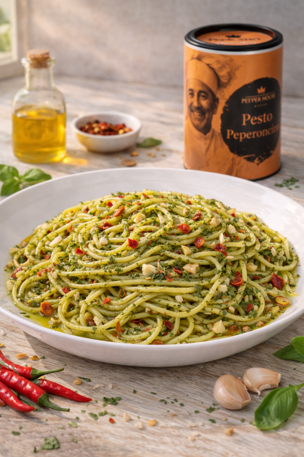 Το Pesto Peperoncino είναι ένα αρωματικό μείγμα για πικάντικη σάλτσα pesto με έντονο χαρακτήρα.